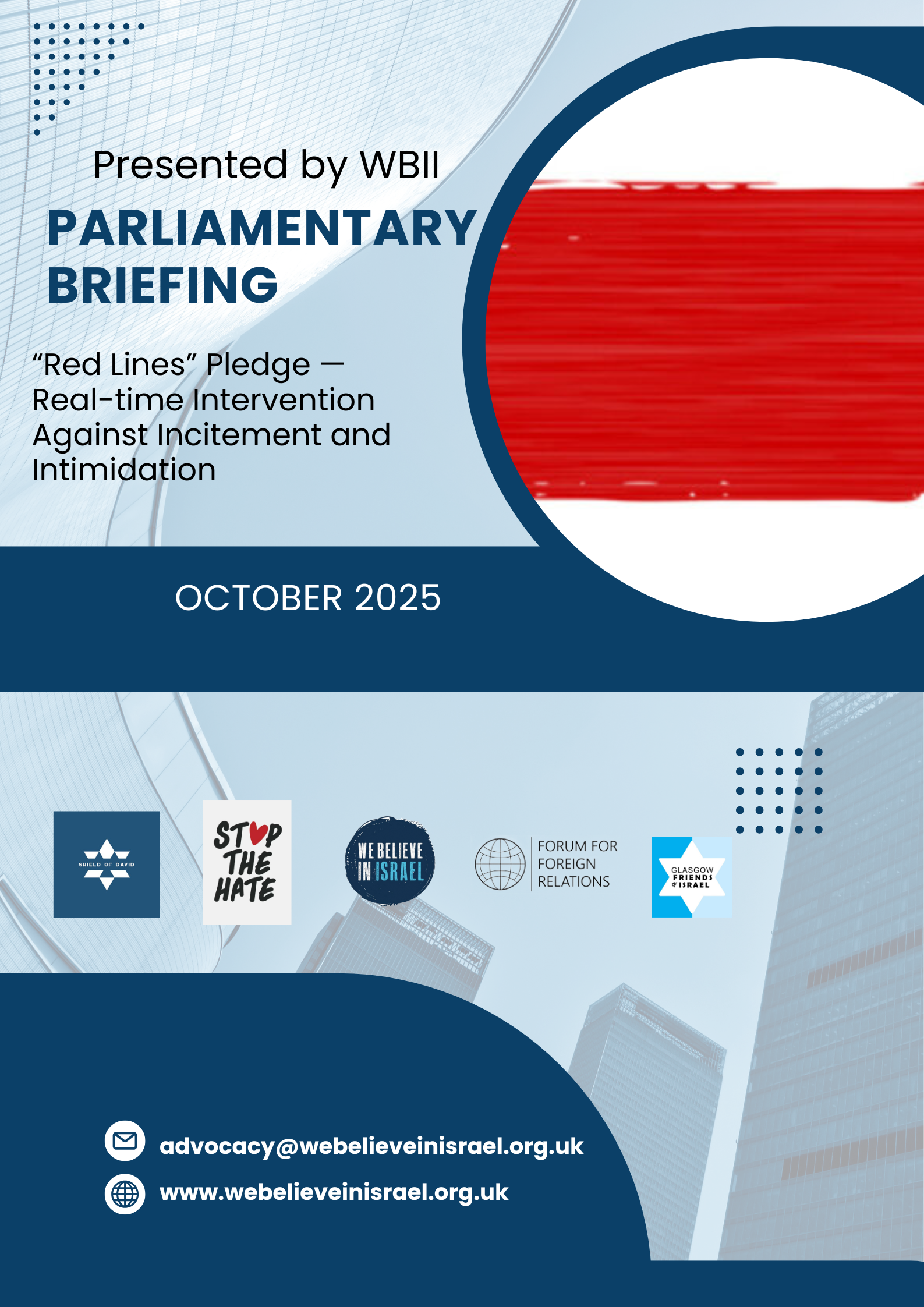 We Believe in Israel (WBII) is publishing a parliamentary briefing that sets out a clear, practical plan to protect both lawful protest and public safety—in real time. The “Red Lines” Pledge provides elected leaders, police commanders, universities, and public bodies with an operational framework to stop intimidation, incitement to hatred, and support for terrorism as it happens, not weeks later.