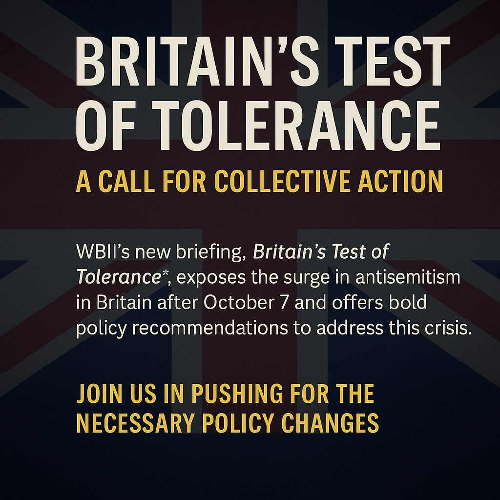 We Believe in Israel (WBII) has released a landmark policy briefing, Britain’s Test of Tolerance: Jewish Hatred Surge After 7 October and Policy Implications, exposing how the Hamas atrocities of October 7, 2023 unmasked the extent of antisemitism embedded within British civic life.