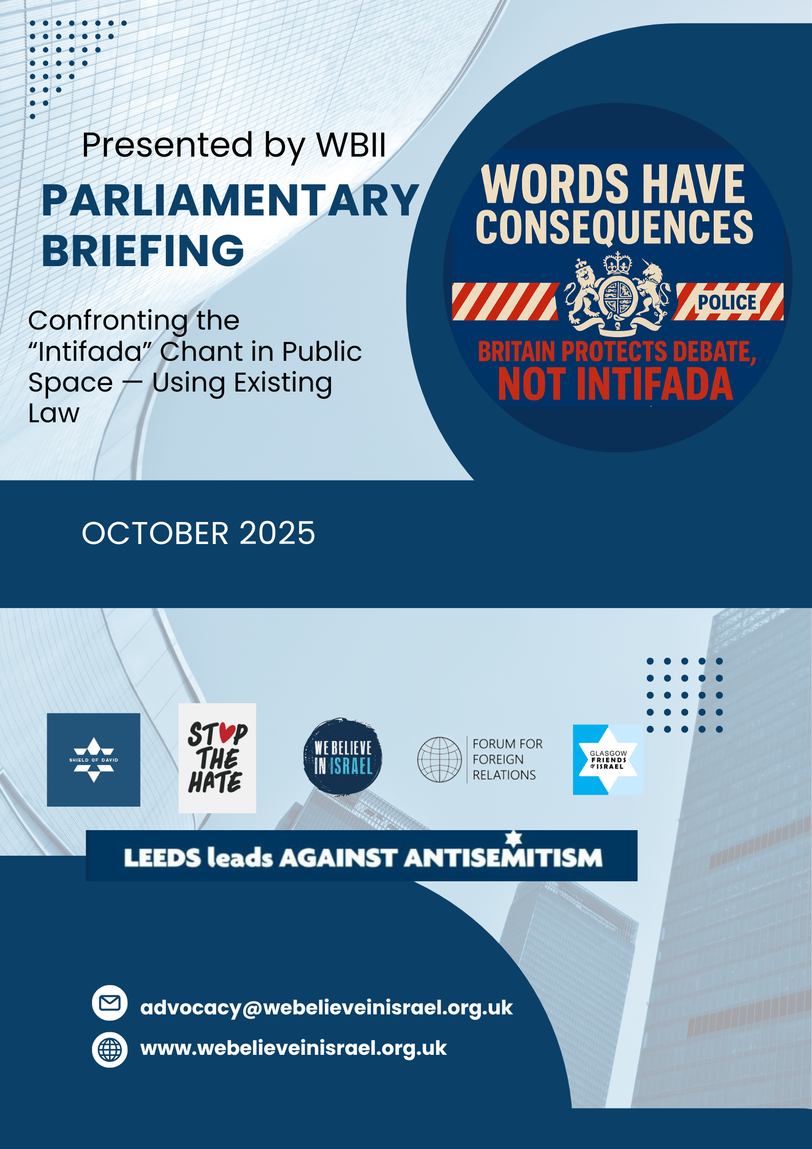 Today WBII is launching a national campaign to end the normalisation of the “intifada” chant in Britain’s public space—backed by our new parliamentary briefing: Confronting the “Intifada” Chant in Public Space — Using Existing Law. The core message is simple: the UK does not need new statutes; it needs clarity and the will to enforce the laws we already have.